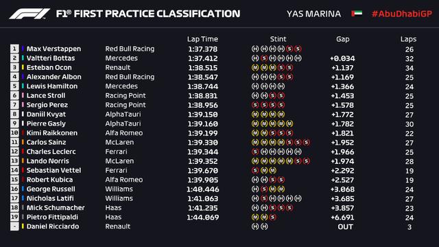 [腾讯] 2020F1阿布扎比大奖赛第一次练习赛 车手位置
